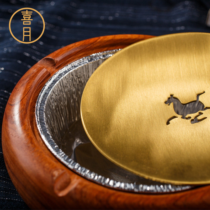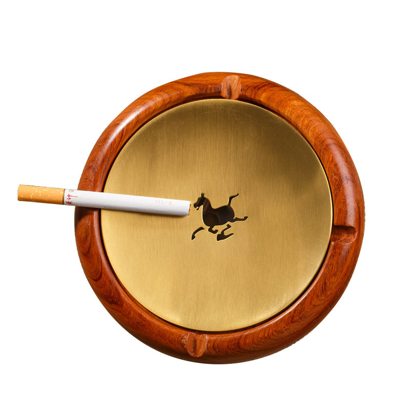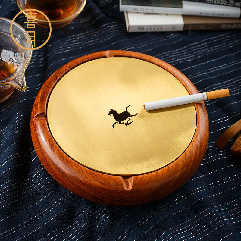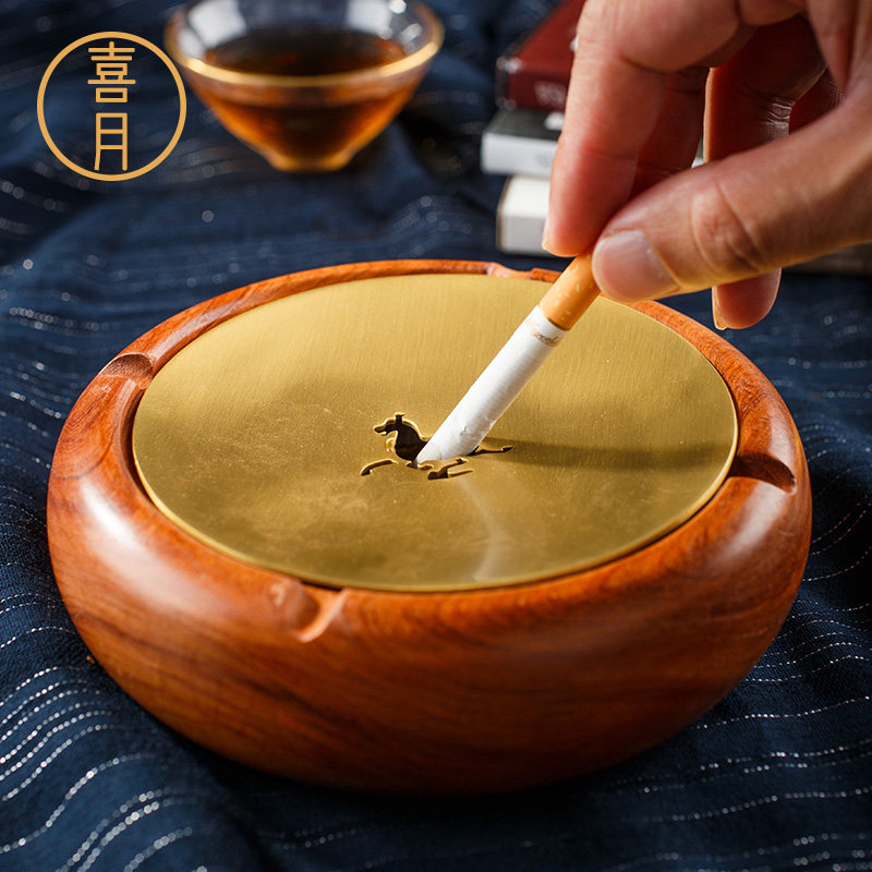 Happy Moon Invisible Tobacco Ash Ash Trays New Chinese Pure Copper Brass Red Wood Solid Wood With Lid Creative Living Room Home