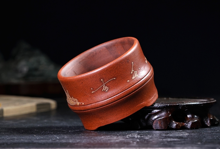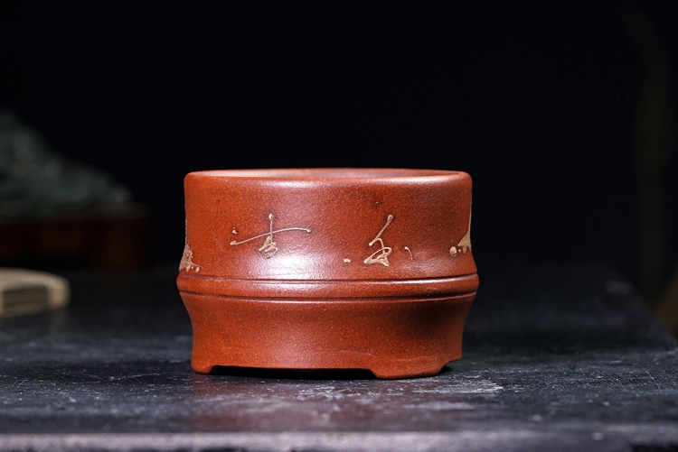 Republic of China purple sand flowerpot pure handmade mud-painted miniature flowerpot Taiwan backflow old object bamboo succulent flowerpot