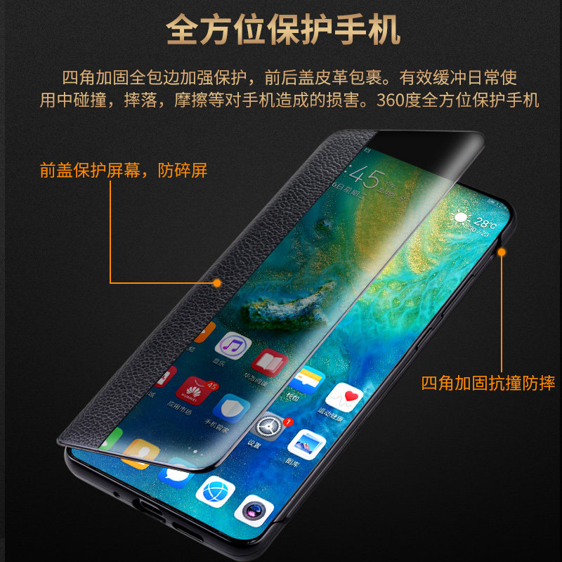 Huawei p30pro mobile phone protection shell p30 protective sleeve p40pro genuine leather leather cover new p40 flip style full package anti-fall mate30 intelligent Windows mate30pr