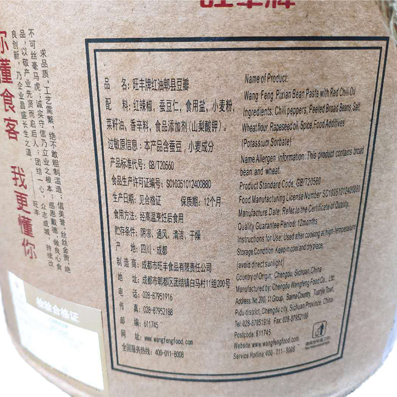 Wang Feng Card Red Oil Pi County Bean Petal 25kg Sichuan Chengdu Bean Petal Catering Hot Pot Noodle Restaurant Seasonings