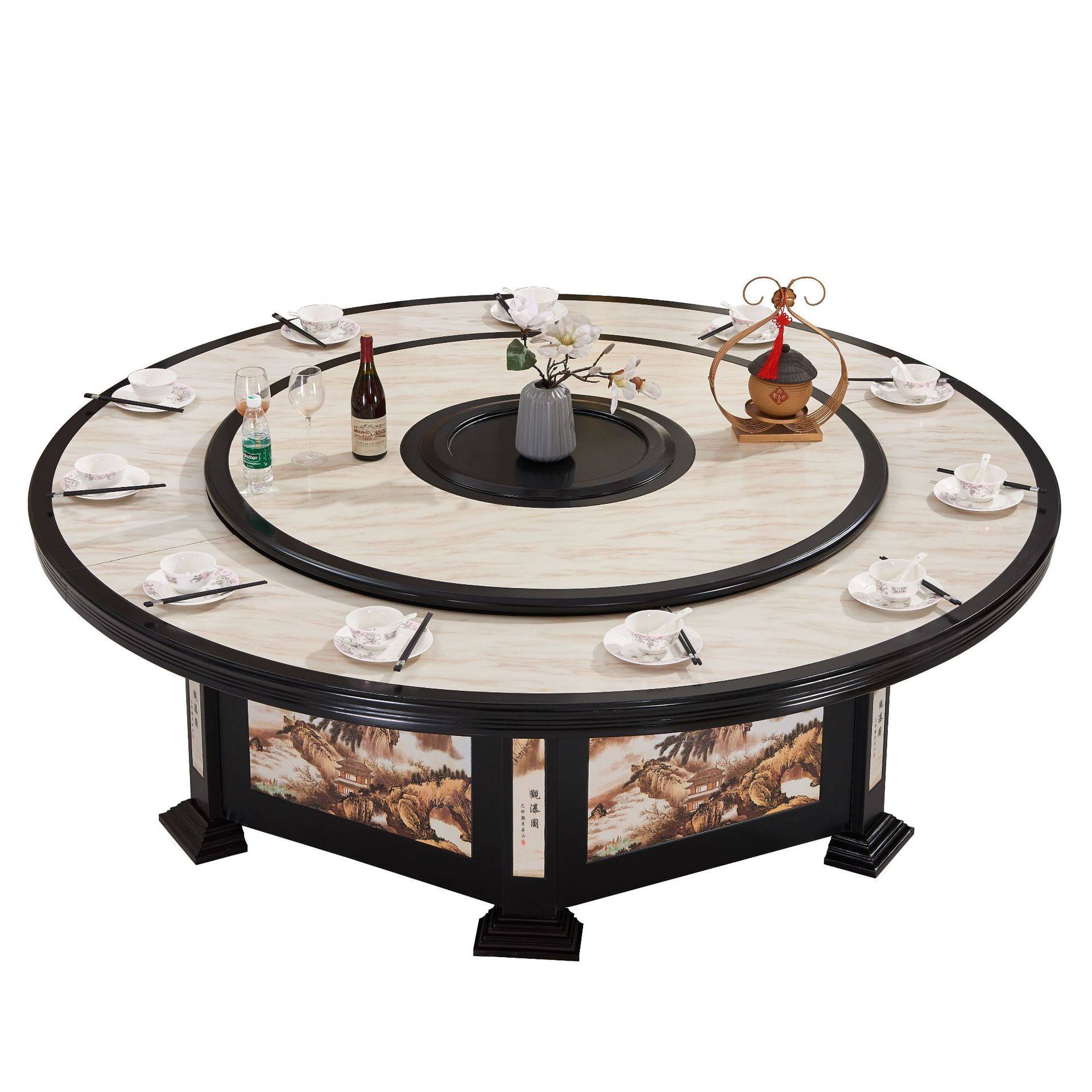 New hotel Chinese solid wood 20 people electric dining table big round table hotel bag automatic rotation 3 m hot pot table