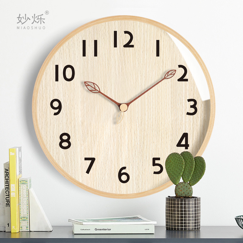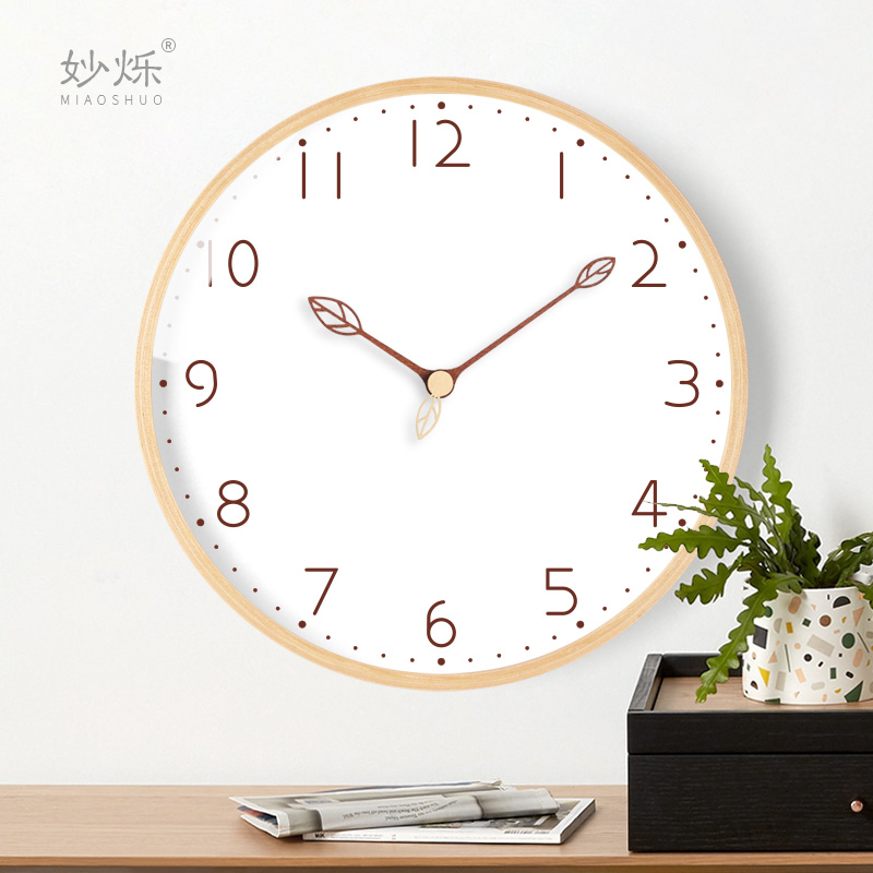 2023 Net red bell restaurant Nordic creative fashion solid wood watch living room household with modern minimal wall clock