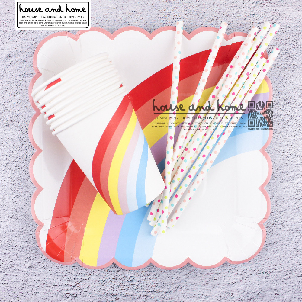 ins disposable color eco-friendly paper disc birthday party picnic party arranged cute dinner plate cake paper dish