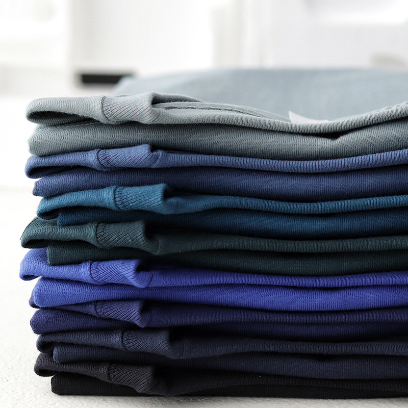 Have blue base retro Ami Kazuki thick body shirt 260g heavy cotton T-shirt short sleeves men