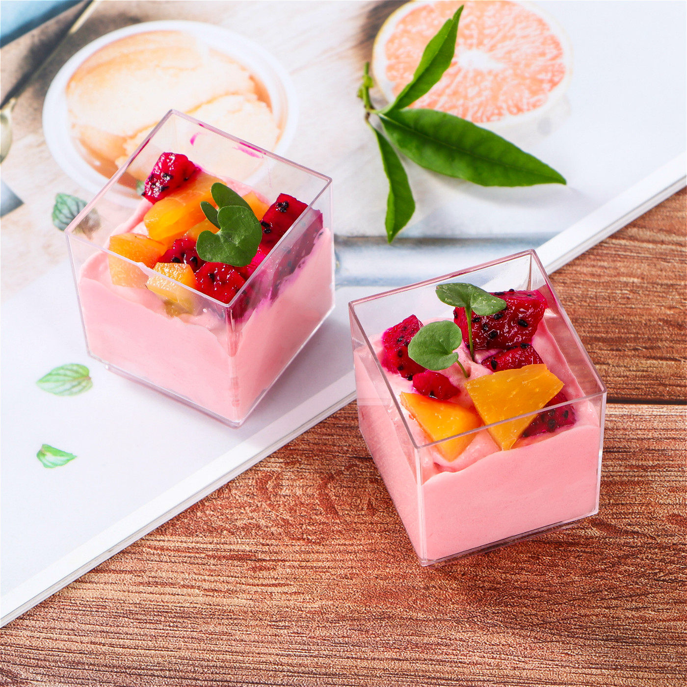 Square Fruit Cube Cup Small Box Dessert Cup Mousse Cup Pudding Cup Yogurt Cup Wood Bran Cup Jiugongge Cup