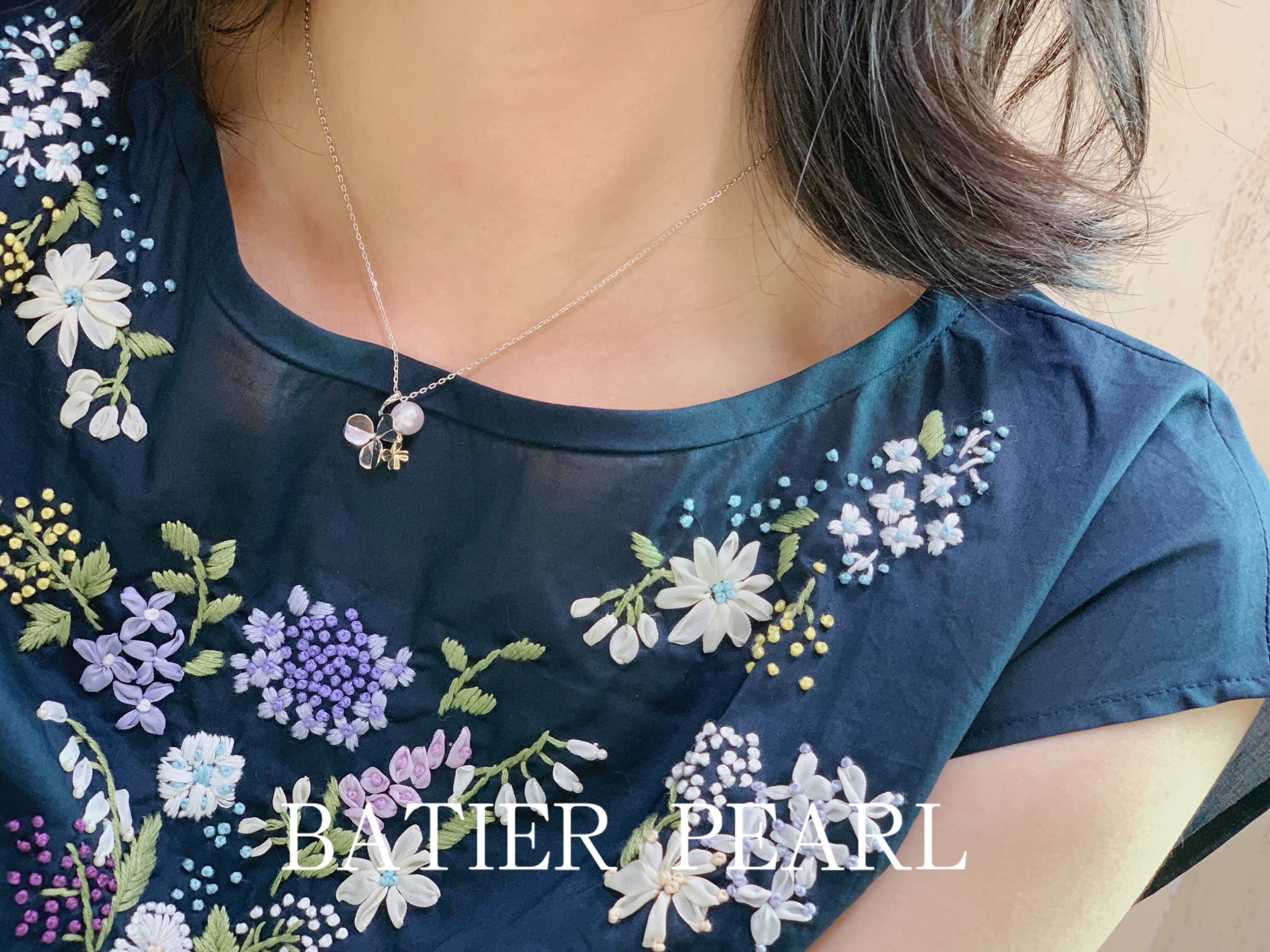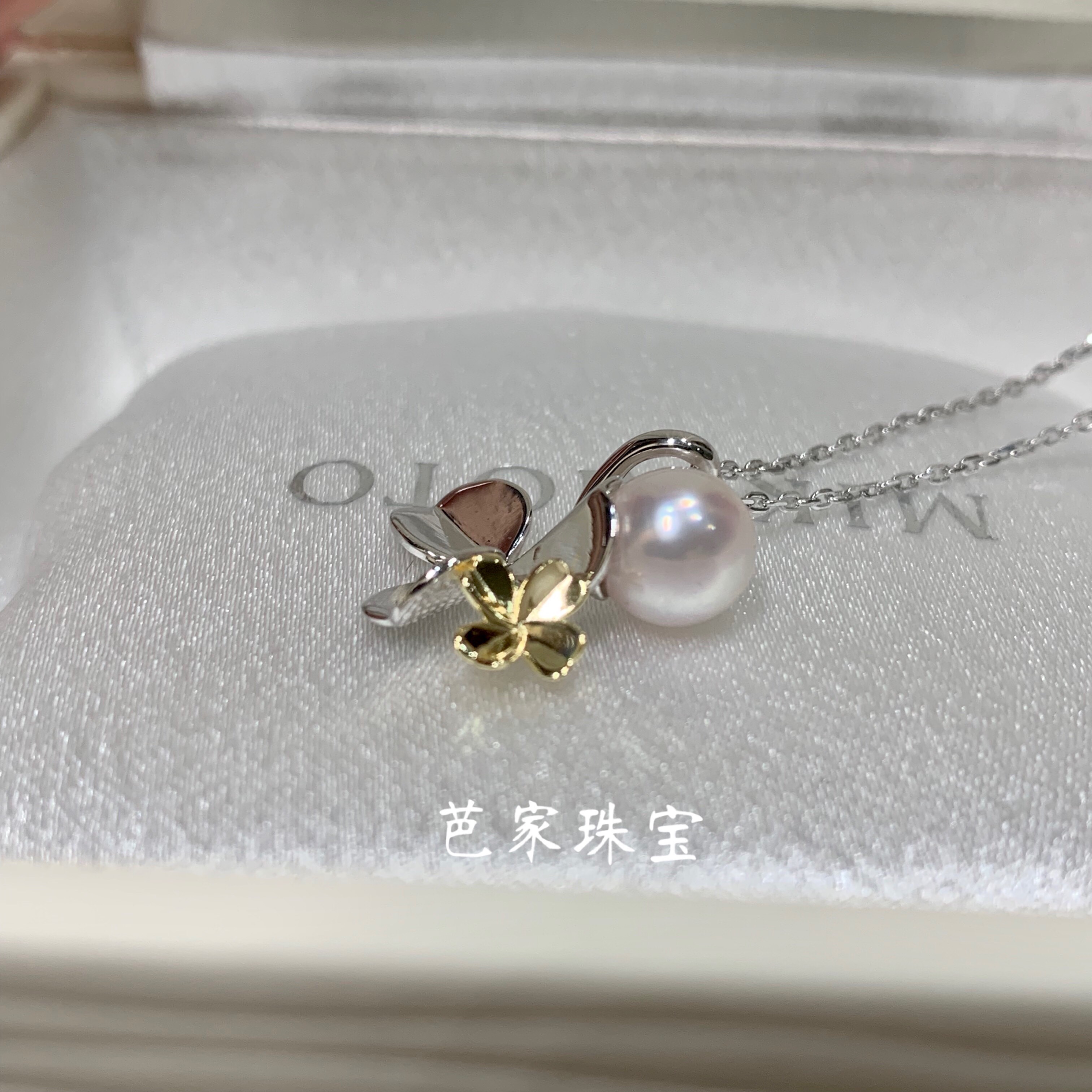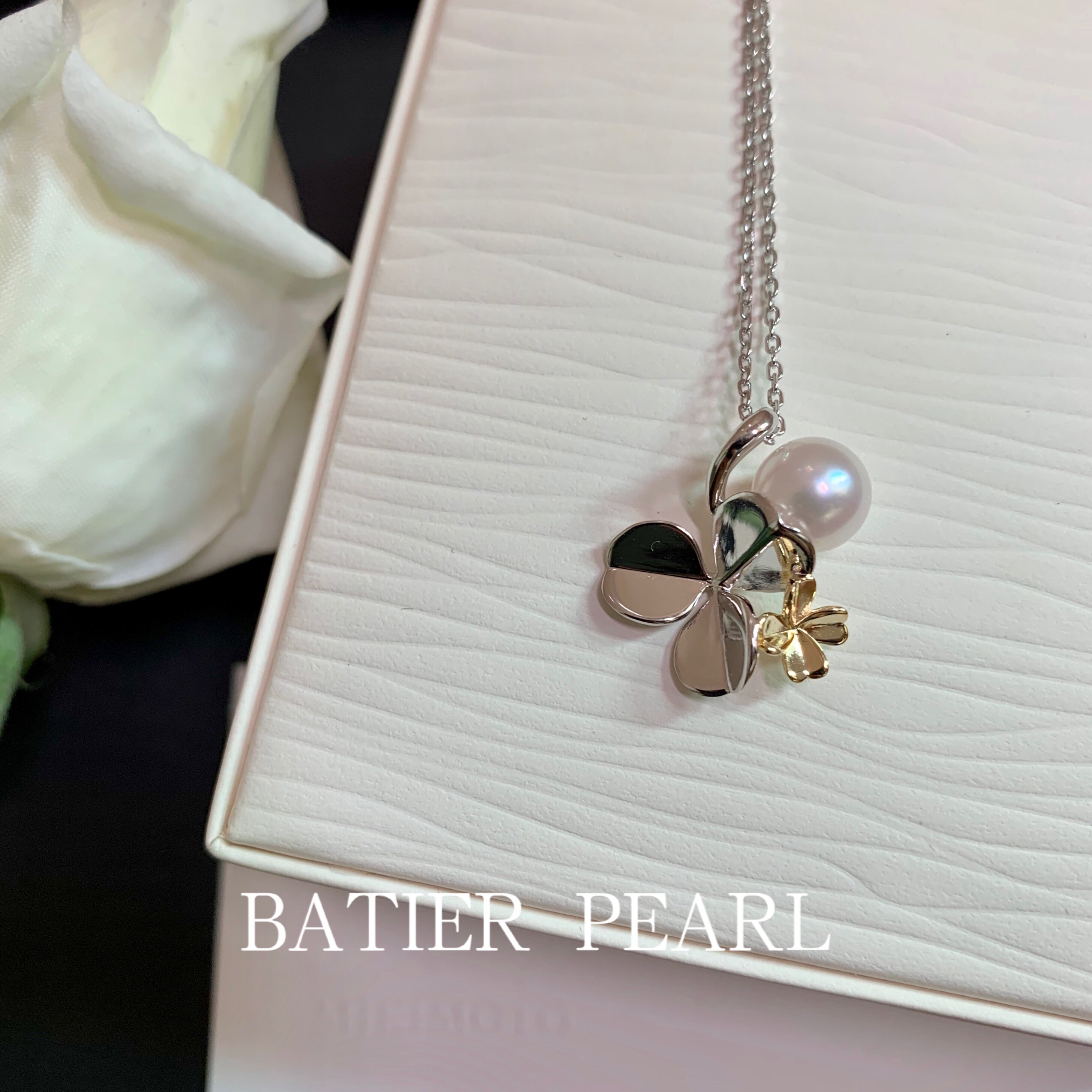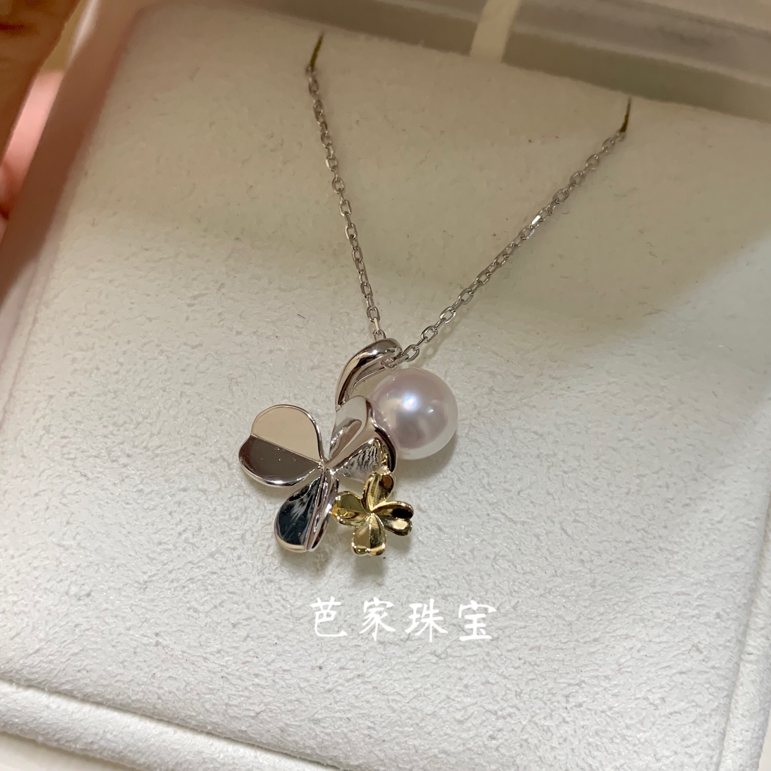 Bajia jewelry four-leaf clover prism Japanese akoya seawater pearl 925 sterling silver pendant necklace