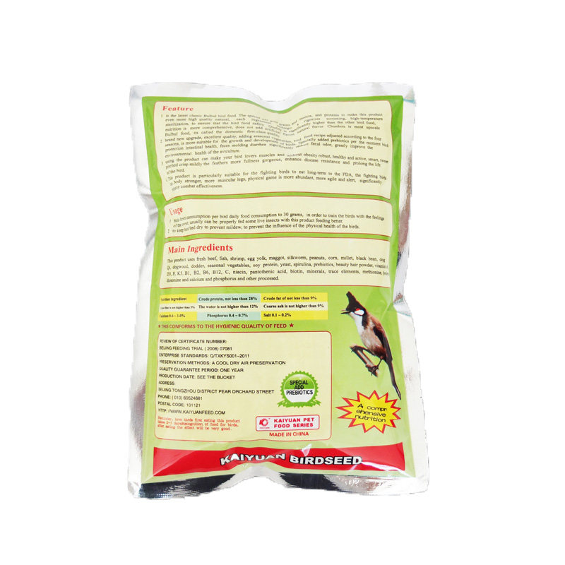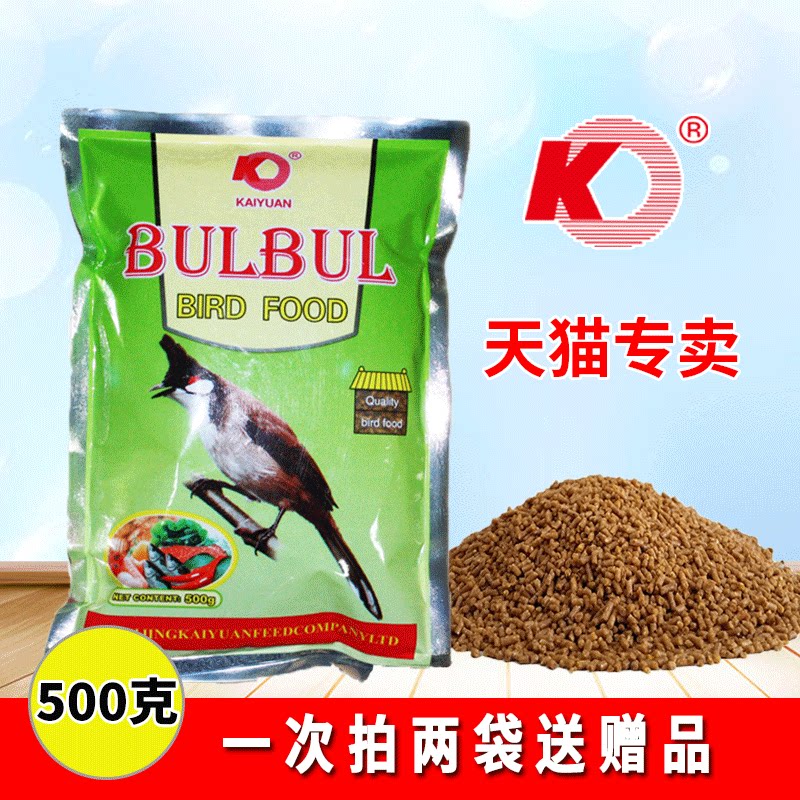 Kaiyuan bird food Red-eared bulbul bird food feed red ass white head white hair bird food daily feathering material orange belly leaf bulbul bird food