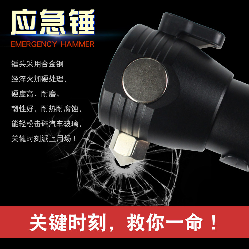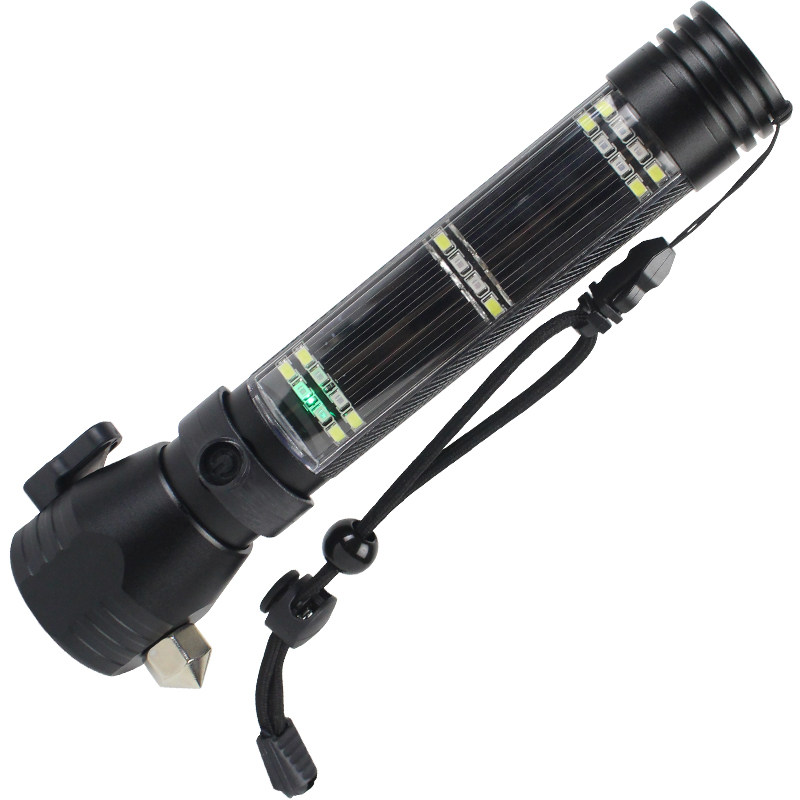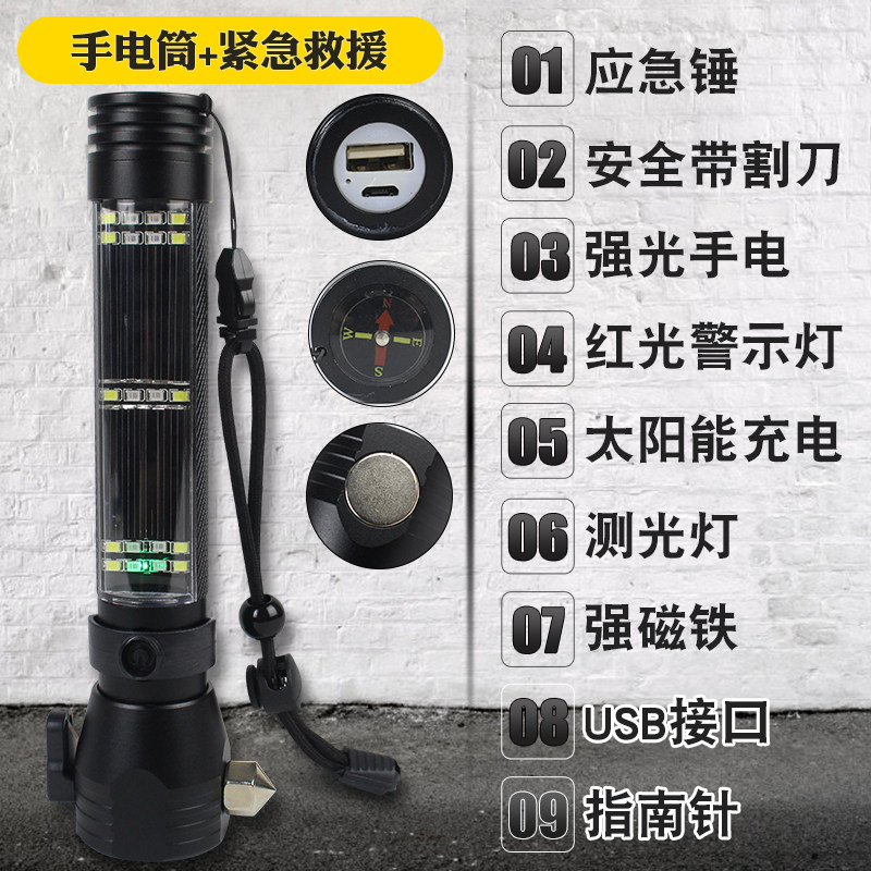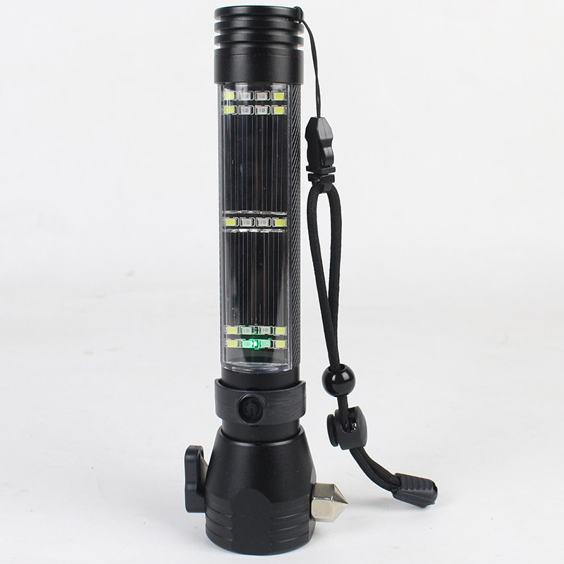Vehicular flashlight multifunction alarm outdoor anti-light solar fire truck with emergency car safety hammer