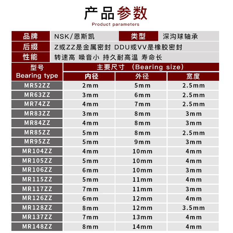 NSK Japan miniature small bearing MR83ZZ high-speed motor engraving machine inner diameter 3mm outer diameter 8mm width 3mm