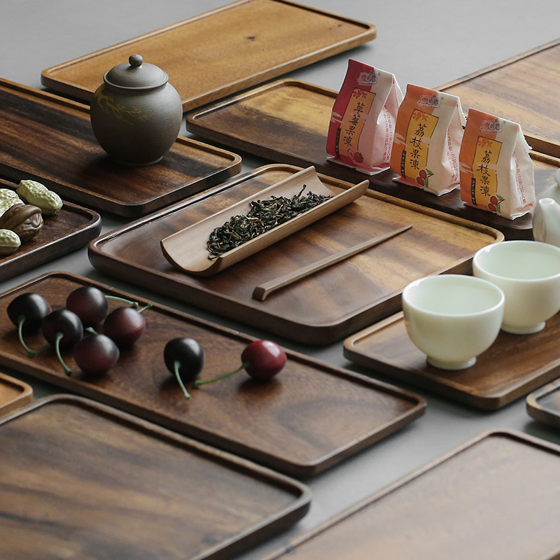 Walnuts Wood Short Tea Pan Hu Peach Wood Long Version Tea Pan Hu Peach Wood Square Tea Dish Hu Peach Wood Round Ruyi Tea Tray No. Tea Tray Large Number Tea Tray