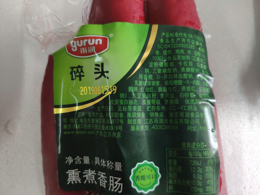 Pork chicken Water Starch (≤10%) Food additives Soy protein powder Edible salt White sugar Spices Collagen casings