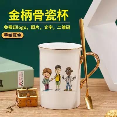 Contact customer service for more discount information (collection plus purchase orders to send coasters and greeting cards) gold handle reverse mouth straight Cup Cup simple (Cup spoon screening box)(B33) gold handle reverse mouth