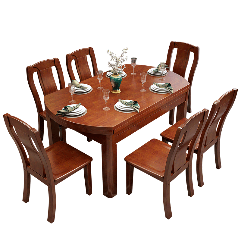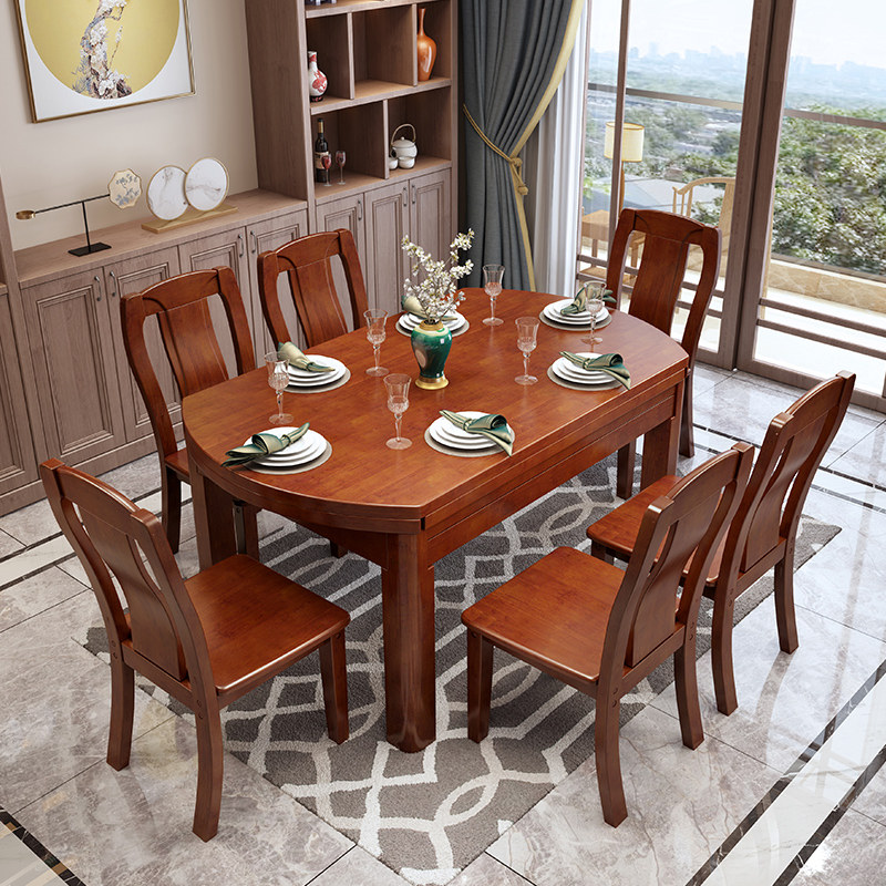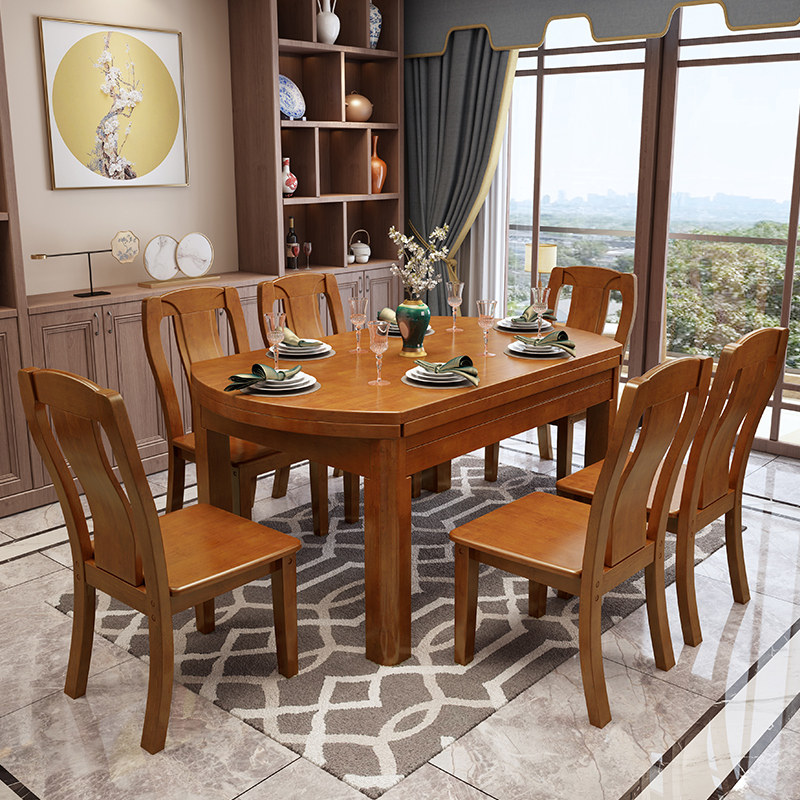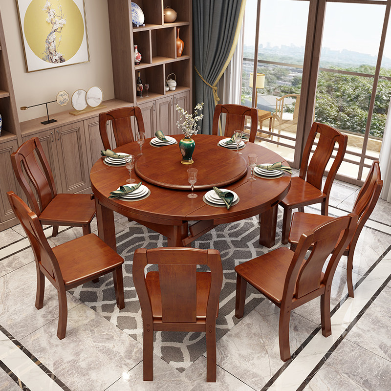 Chinese-style modern solid wood dining table and chair combination retractable folding round table multi-functional small apartment dining table dining table 4