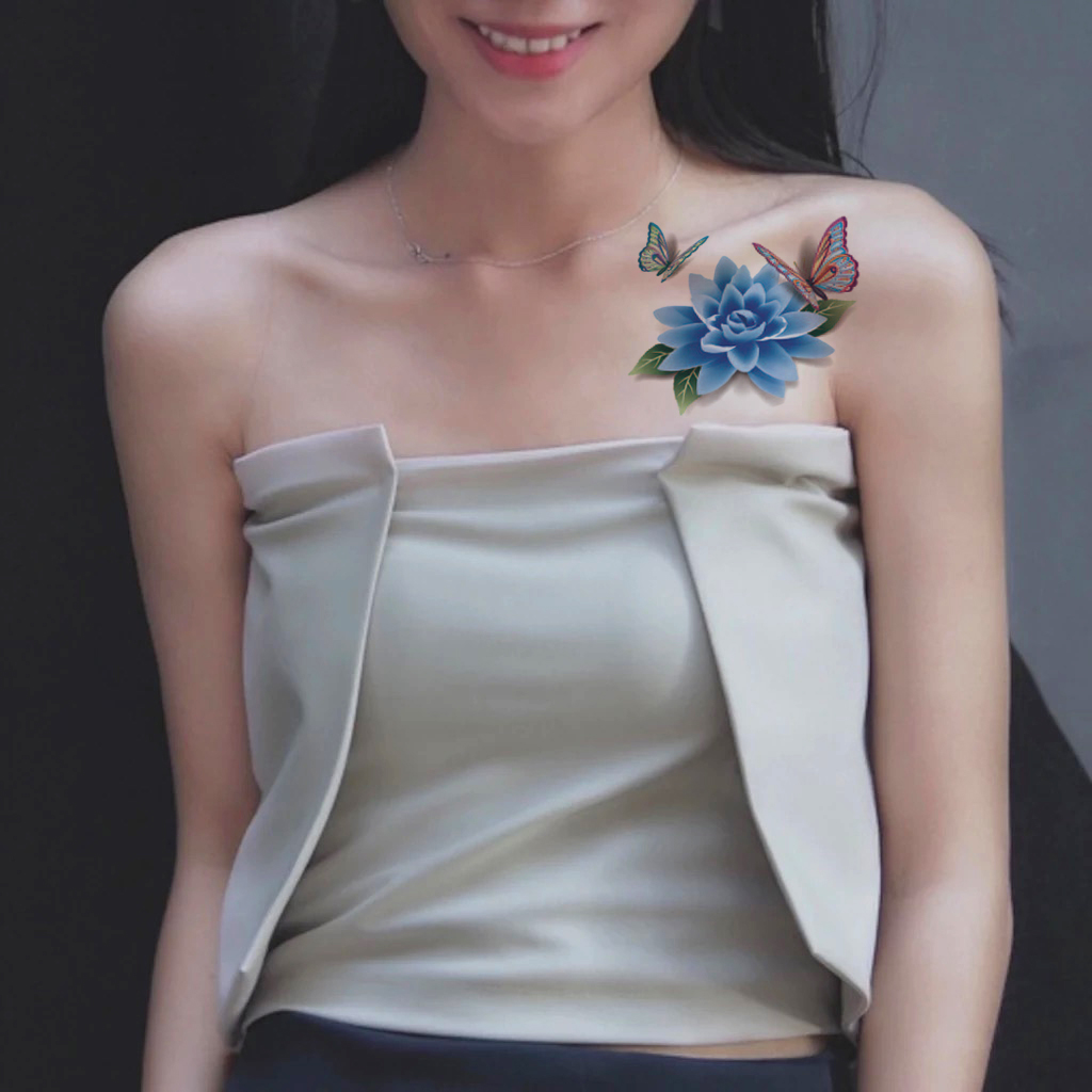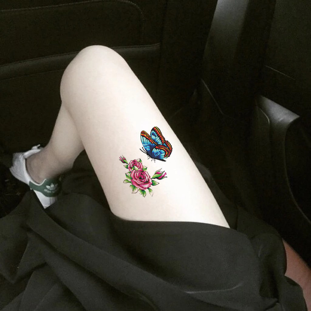 3D Rose Butterfly Tattoo Sexy chest Pre Waterproof Persistent Female Ankle Clock Korean Net Red in the tide