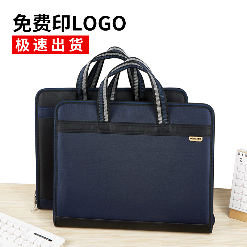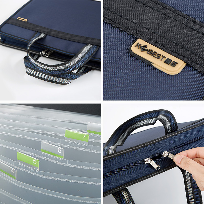 Kangbai canvas organ bag multi-layer enlarged file bag custom meeting men and women portable shoulder briefcase large capacity student information test paper storage bag business office bill interlayer printed logo