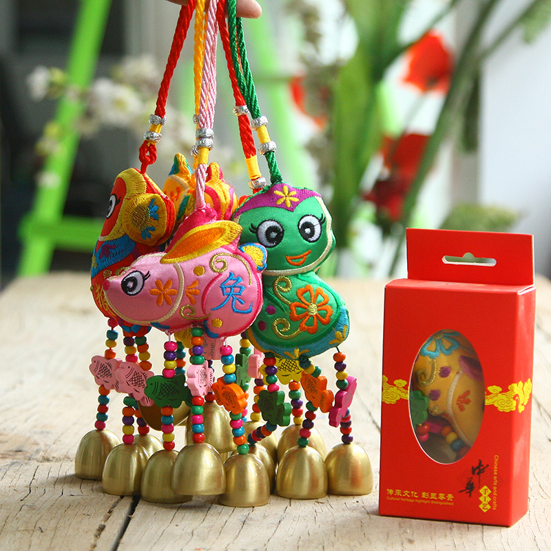 Good joy embroidery pendant wind chime Spring Festival Zodiac hanging Chinese National style characteristic handicraft gift