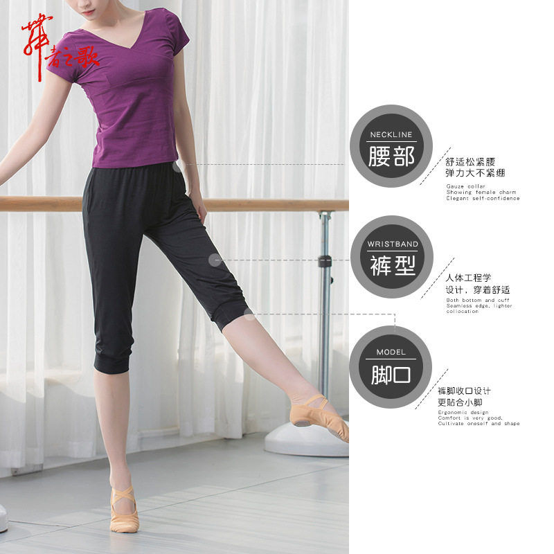 Yoga dance cotton practice ninth pants female adult gymnastics pants large size slimming lob pants summer
