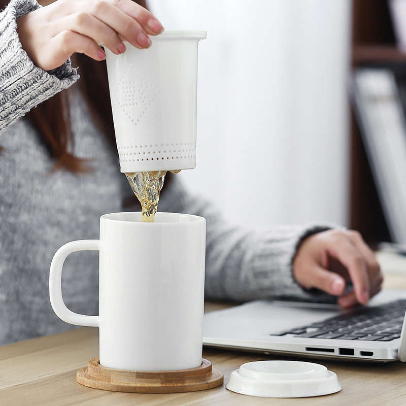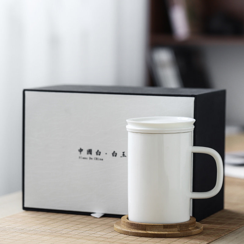 White porcelain office cup tea set ceramic with lid filter personal cup office large capacity water cup tea cup gift