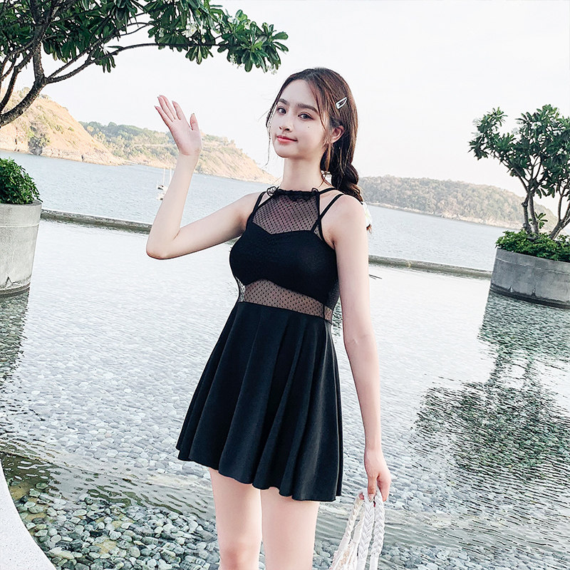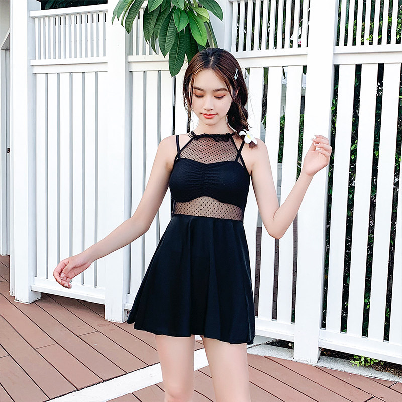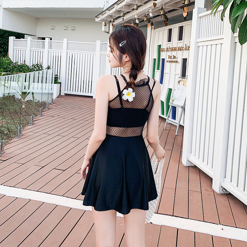 Swimsuit women's one-piece conservative skirt-style cover belly thin boxer gather black sex to catch hot spring 2021 new ins style