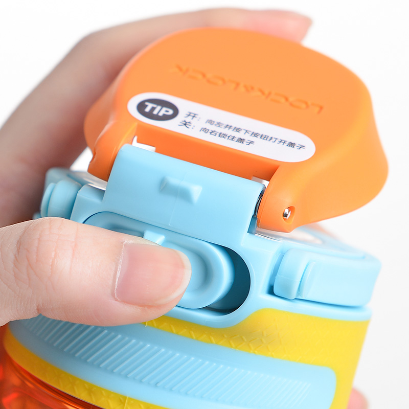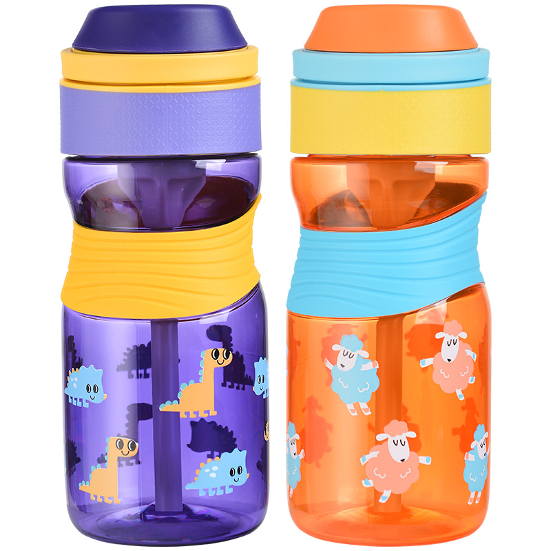 Lock lock tritan water cup cartoon children's straw water cup plastic cup male and female students accompanying cup