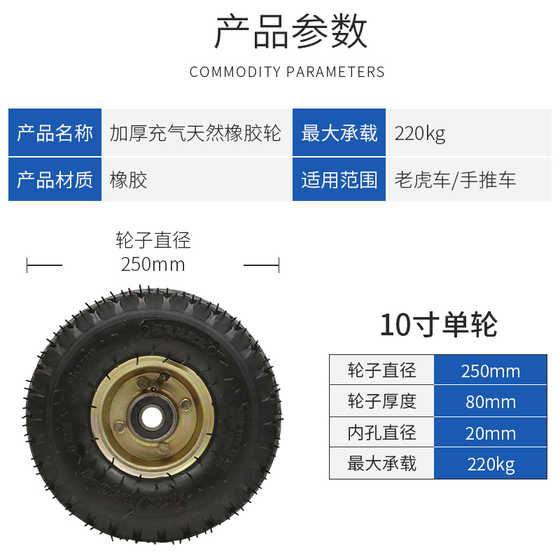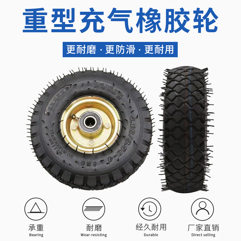 10 inch inflatable single wheel Inflatable wheel 410 350-4 thickened 6-layer tire inner diameter 20mm can be equipped with axle