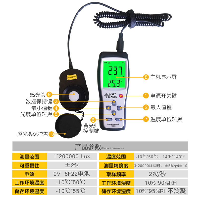 Himaterometer Two-type illumination intensity tester high-precision illuminance meter AS823