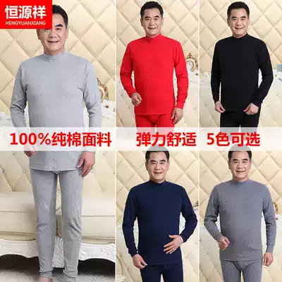 Hengyuanxiang heating clothes Men's pure cotton mid-high waist autumn clothes sanitary pants suit men's bottoming large size cotton sweater dad
