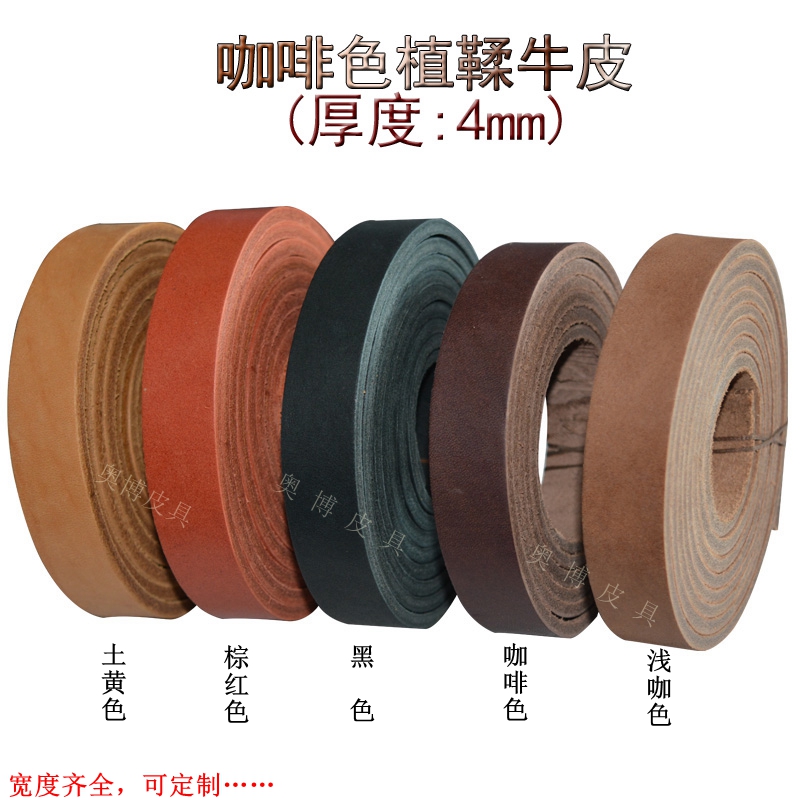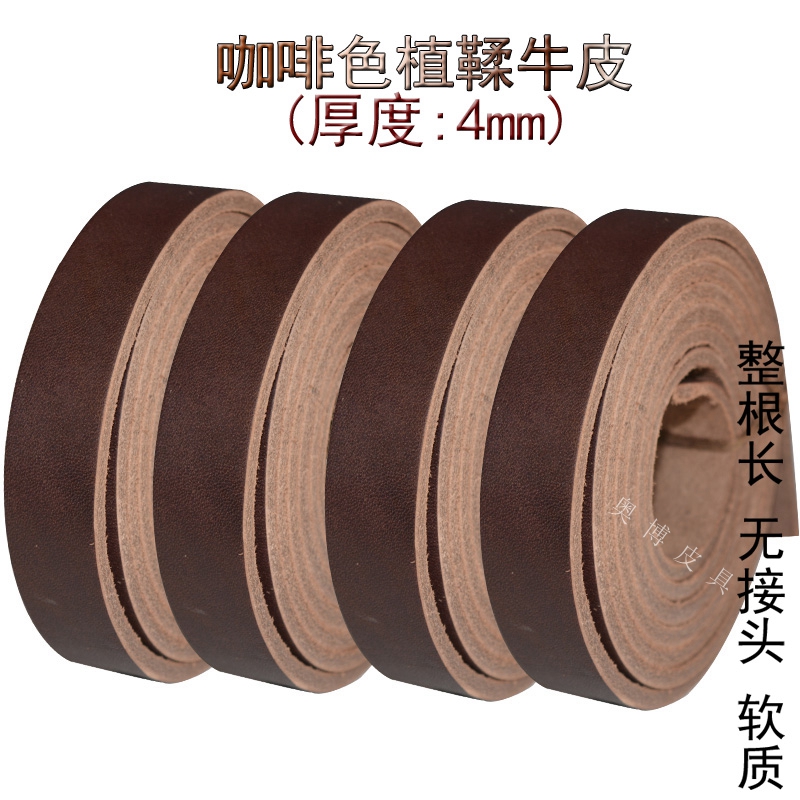 Coffee colour 4 mm thick head Planted Tannic Bull Leather Pure Bull Leather Rope Leather calf leather Leather Belt Diy Belt Hand-made Traction Rope