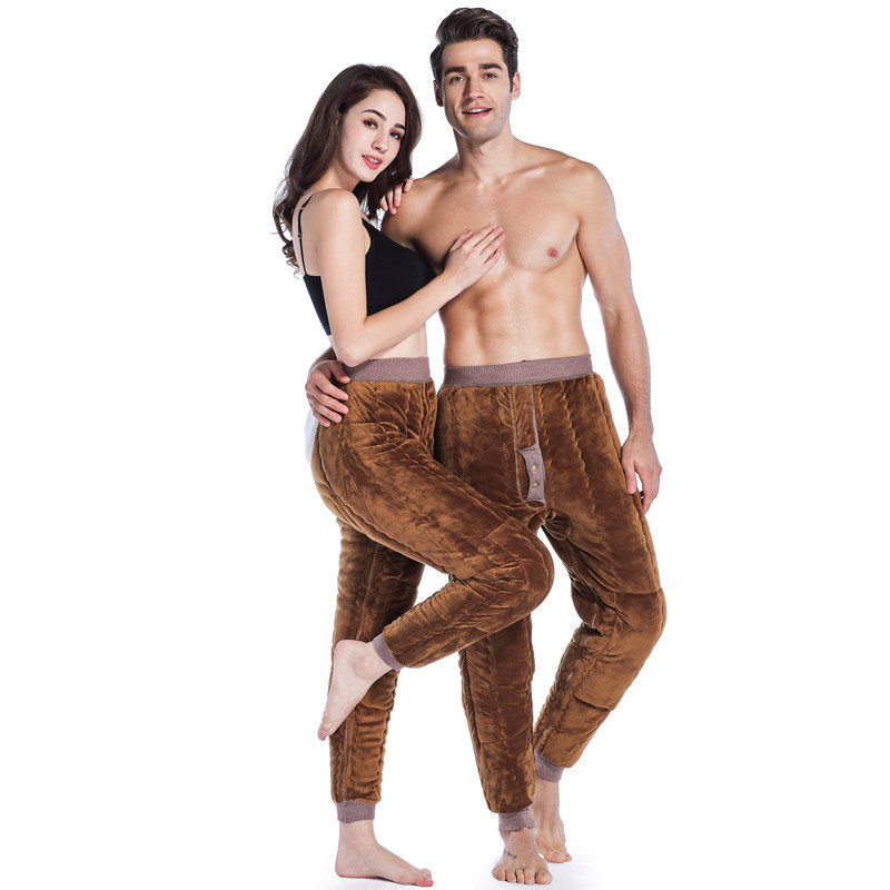 Cotton pants men's winter plus velvet thick camel wool ladies high waist large size loose northeast middle-aged and elderly wool warm