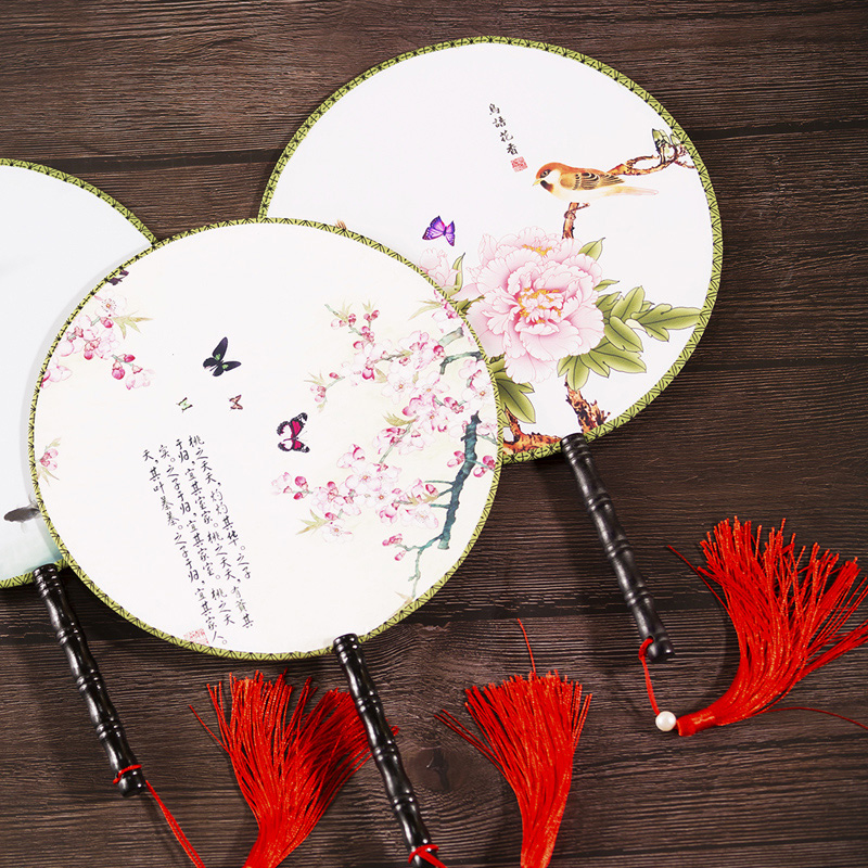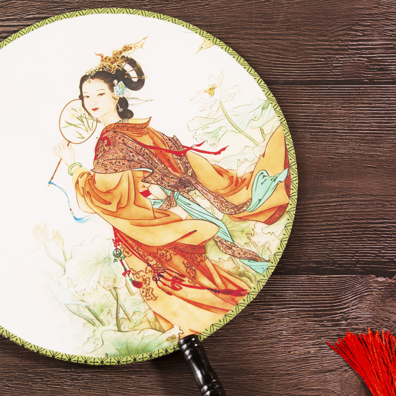 Chinese style palace fan female wooden handle Hanfu fan performance ancient style round fan dance fan classical performance Chinese style group fan