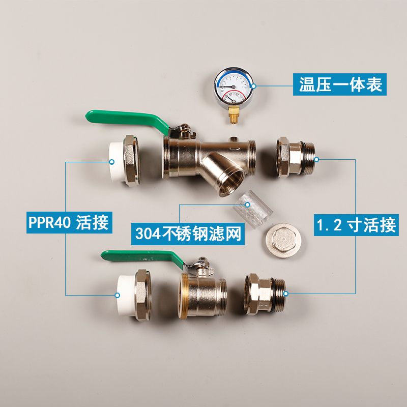 PPR40 filter ball valve suit temperature pressure meter 1 2 inch second floor heating water distributor water inlet water return total valve switch