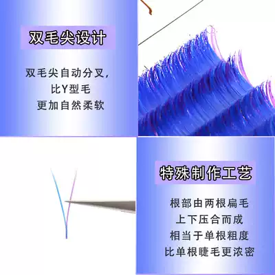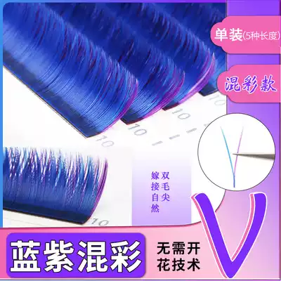 New American ciliary blue purple mixed color V-shaped eyelashes flowering flat hair encryption Big V false eyelashes super soft single