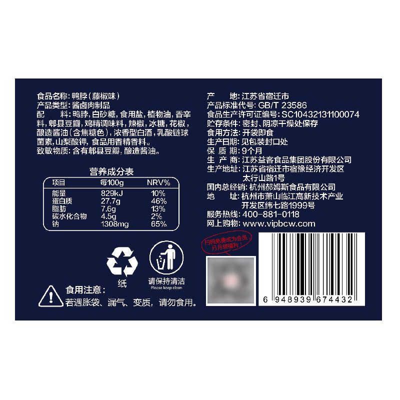 (Baicao flavor-Duck neck 110g*2) Duck snack Meat braised snack Cooked food small package