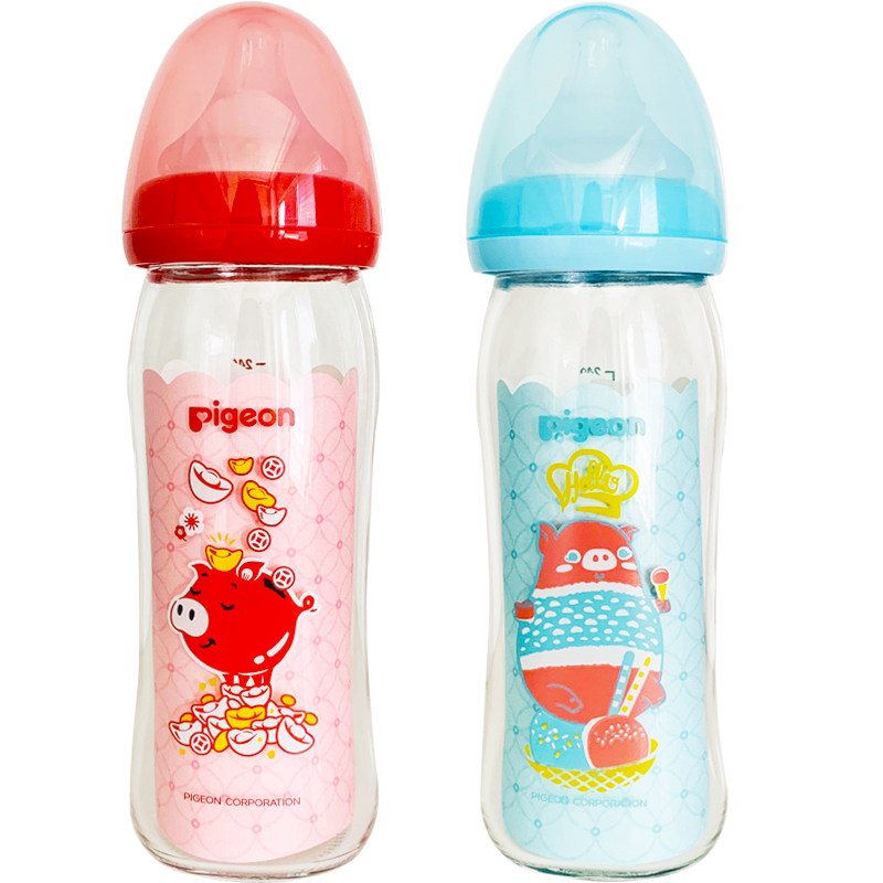 Békiss bottle glass raw Xiao version baby bottle colored drawing more than March pacifier blue red pig year baby used