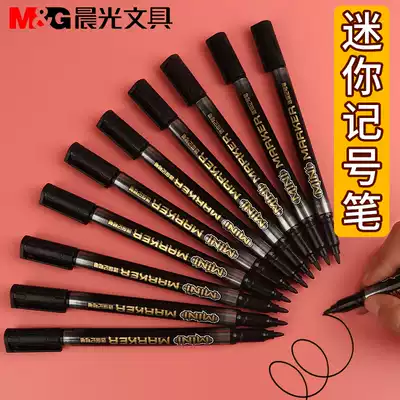 Morning light oily marker Black non-fading Waterproof quick-drying single-head mini marker Thin head small student big black pen Logistics packaging thick pen hook line pen Small head children's painting brush