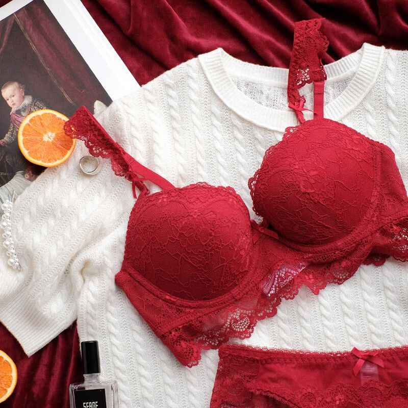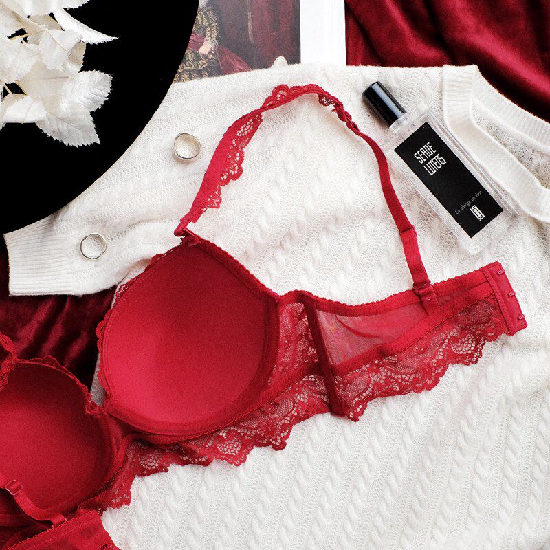 Wine Red Lingerie Suit Wedding Bride Pregnant Woman Newlywed Bride Poly bra Sexy with steel ring lingerie suit