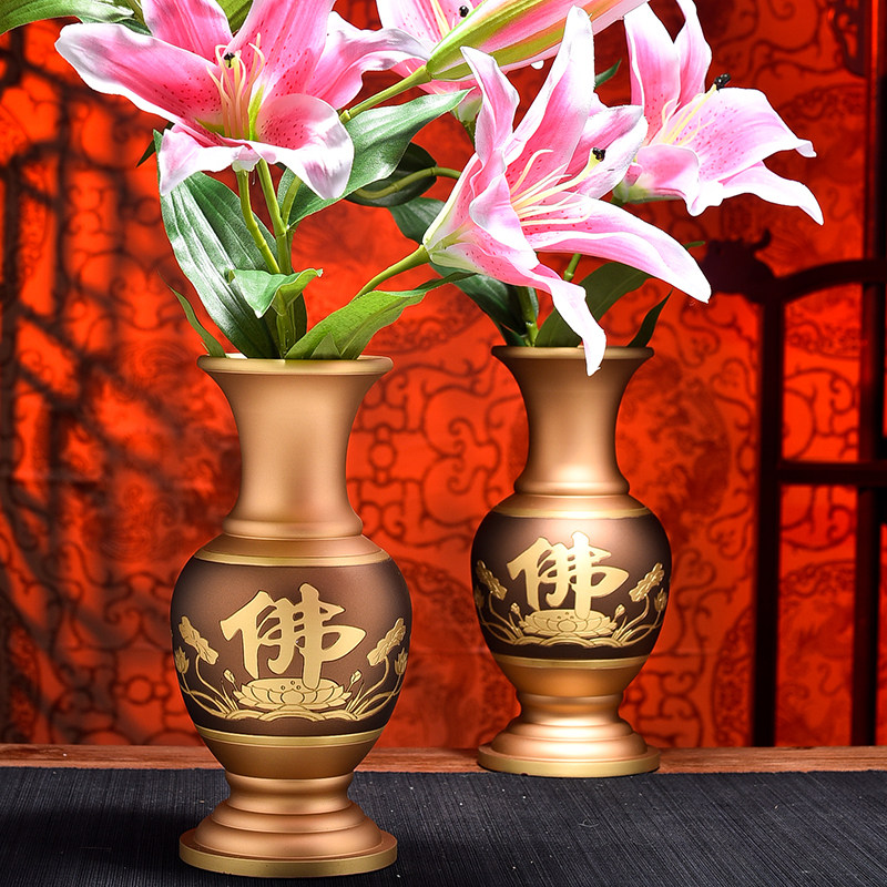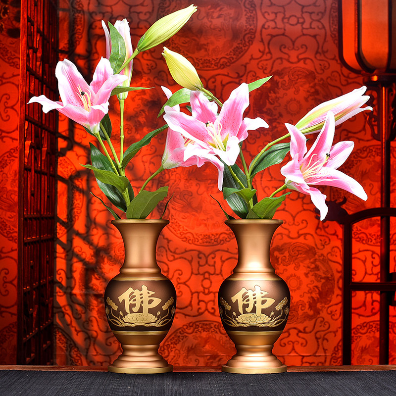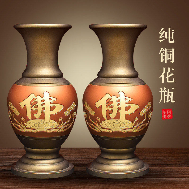 Pure copper vase for Buddha vase for God of Wealth Guanyin net water bottle for fortune household lotus vase Buddha temple Buddhist supplies