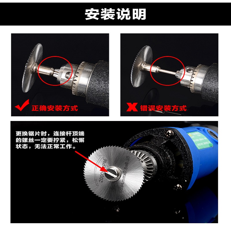 3.17mm rod +6PC high speed steel saw blade 54.8mm+3PC cutting blade (can saw tile aluminum alloy copper wood)