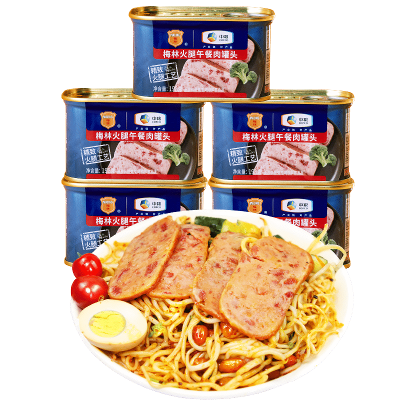 Medium Grain Merlin Pork Rear Leg Meat Ham Afternoon Meal Meat 198g * 5 Jars Sandwich Celeriatmeal Ready-to-eat Canned Meat Cooked Food