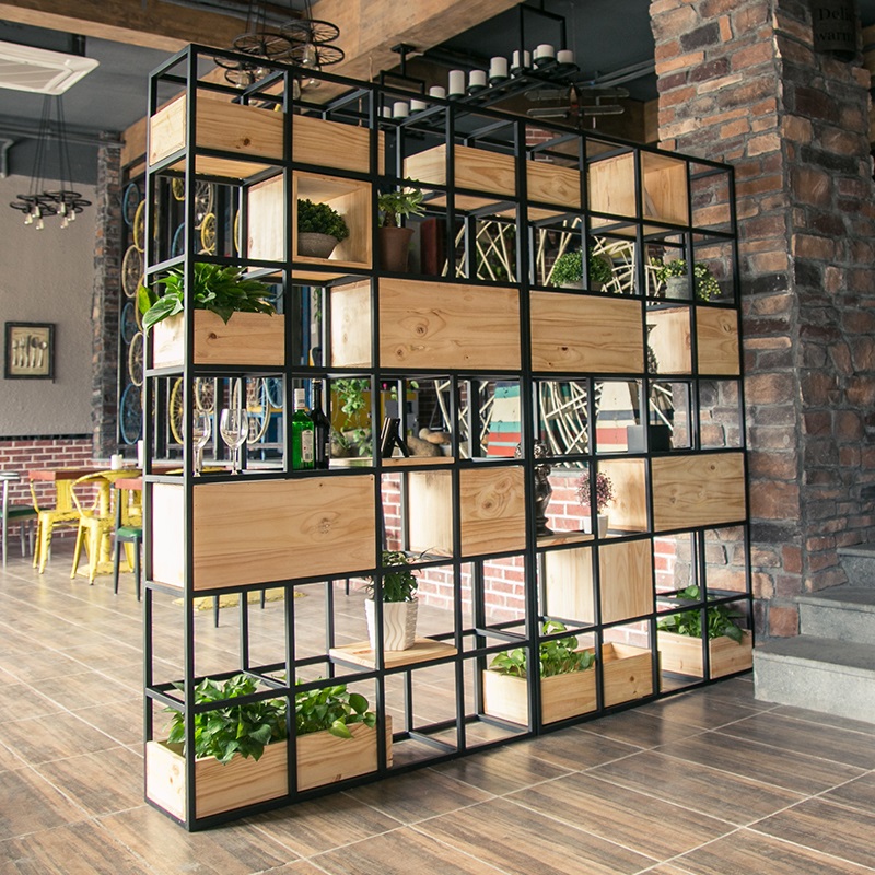 Loft decorative shelf bookshelf hair salon partition screen rack dining room trapezoidal floor large capacity multi-layer