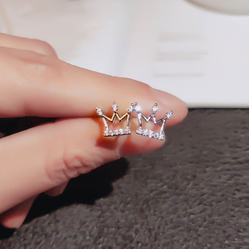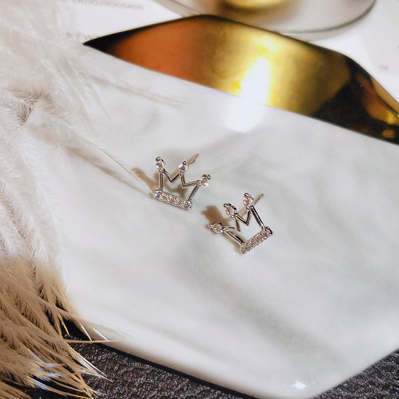 Net Red Crown Ear Needle Female Silver Pin Brief South Korea Earrings 2022 New Tide Qi 100 Hitchhiking face Thin Ear Accessories