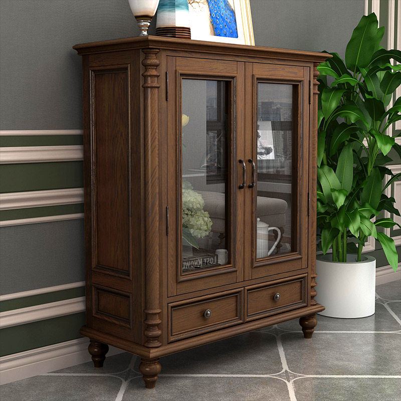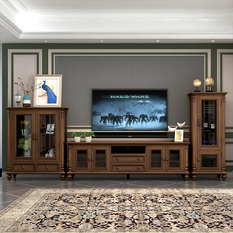 American all solid wood TV cabinet wall cabinet combination living room floor cabinet overall TV background cabinet simple ash wood furniture
