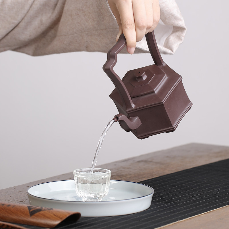 Tao Yuan Yixing original mine purple sand teapot Master pure all hand-made tea teapot Six square cloud Tiliang Teapot set