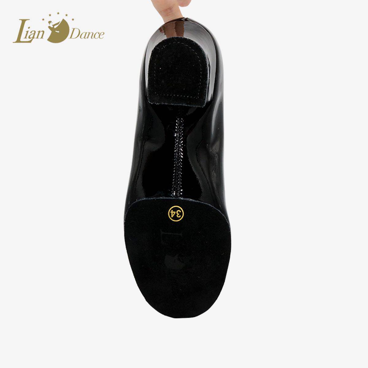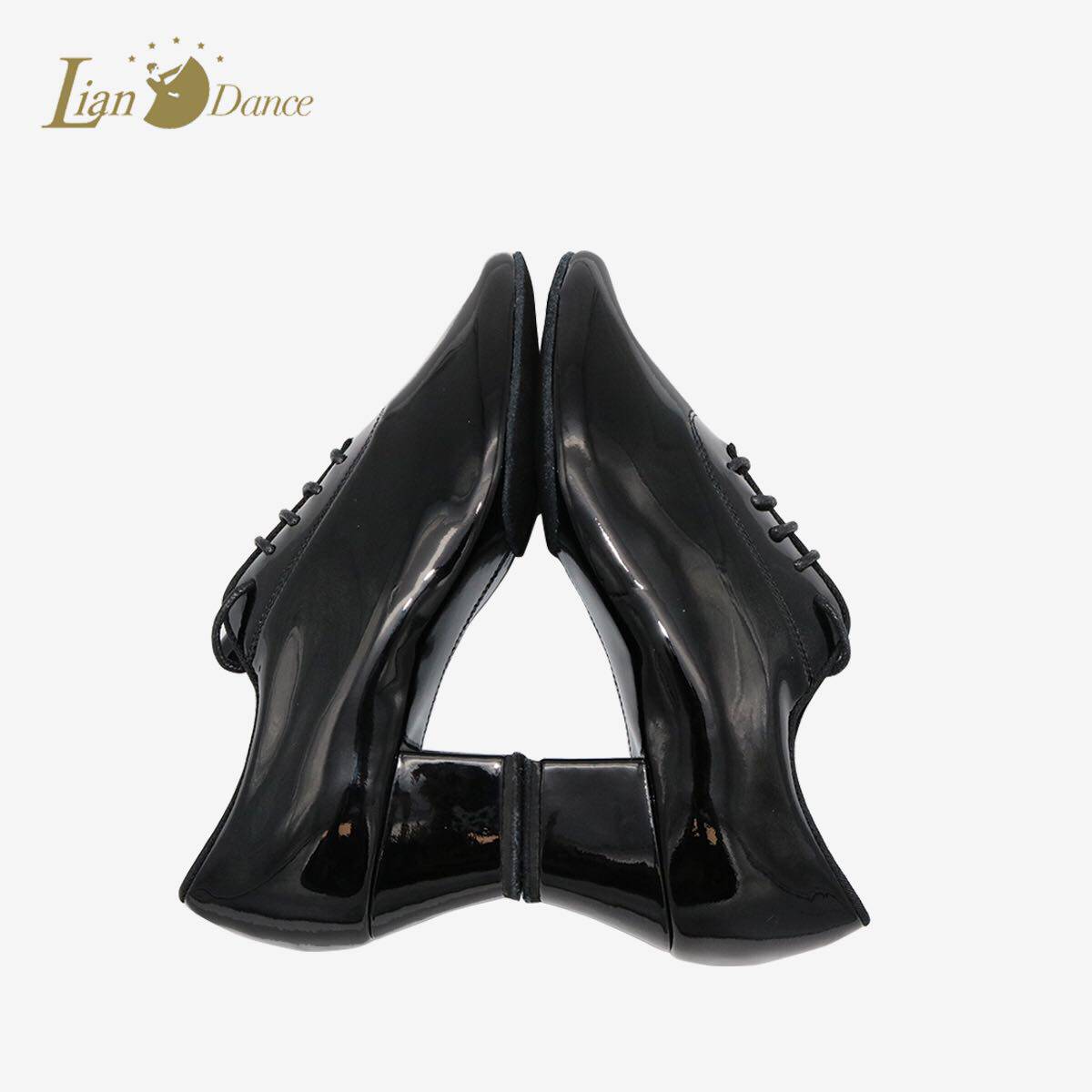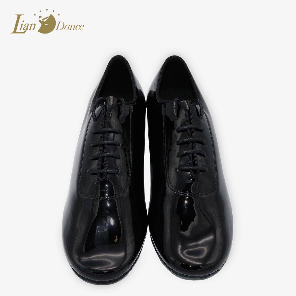 LianDance chain Danes boy bright leather Latin dance shoes race Two points bottom dance shoes Training lacquer leather dance shoes