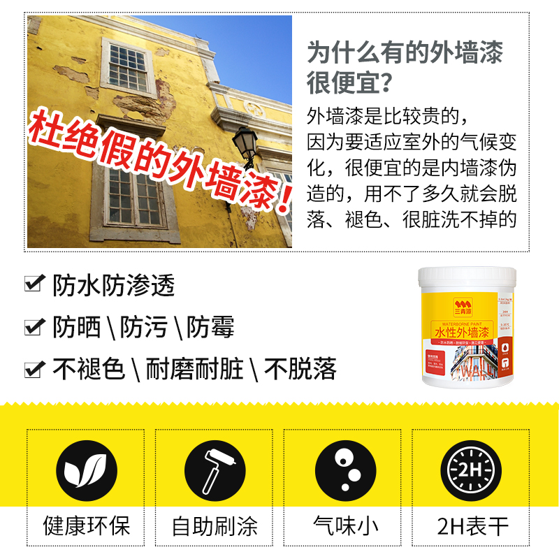Sanqing External Wall Paint Self-Brushed Waterproof Emulsion Varnish Sunscreen Outdoor Outdoor Lacquered Grey Color Wall Paint Home