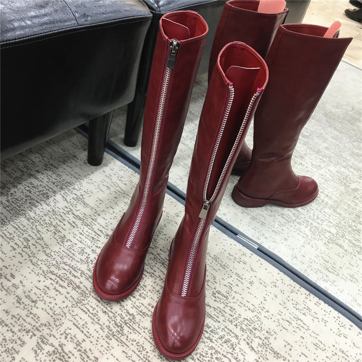 (Xia Xiaotian) European and American Inn Former pull chain flat-bottomed high cylinder boots genuine leather rider boots, however knee-long cylinder boots female