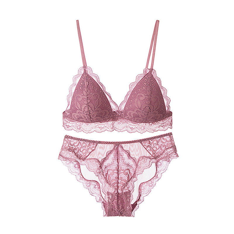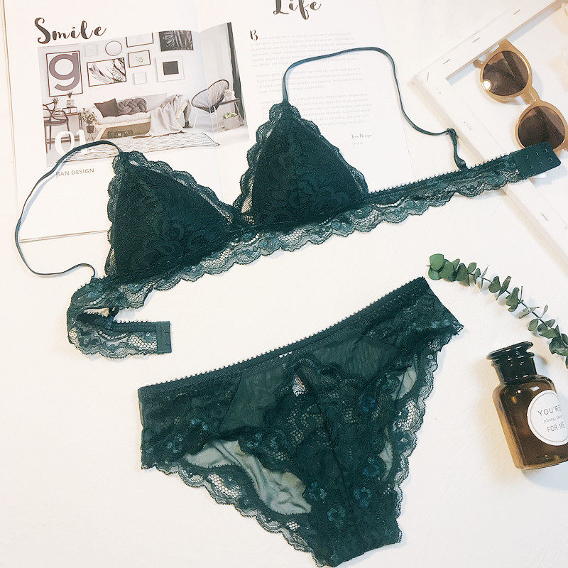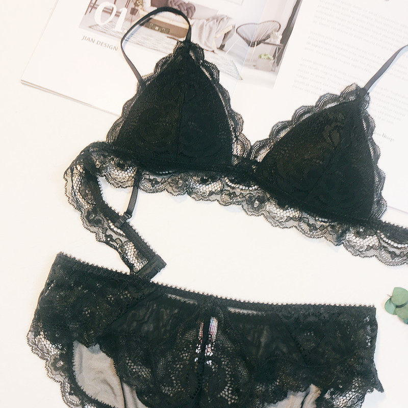 French Lace Bralette Women's Underwear No Steel Ring Slim Fit Triangular Cup Small Chest Comfort Lingerie Suit