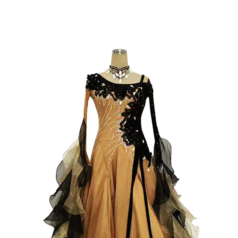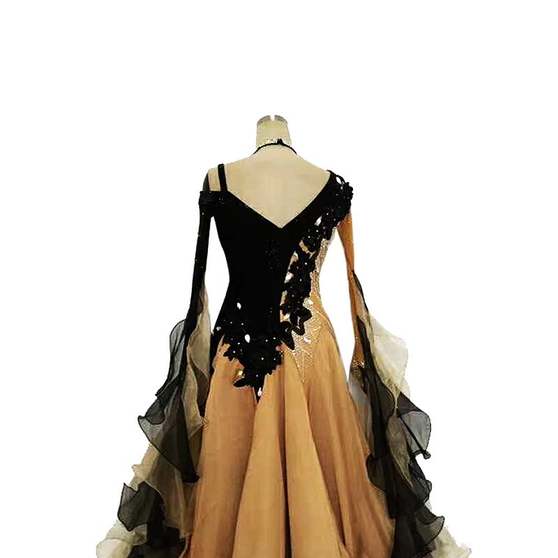 Modern dance national standard dance competition skirt performance skirt plus diamond ribbon women's big dress colorblock skirt