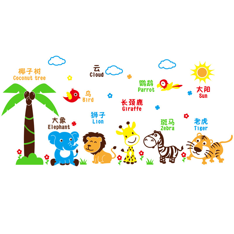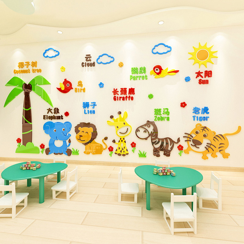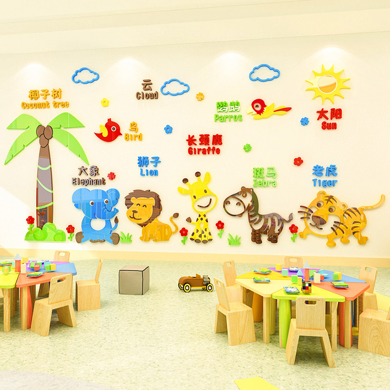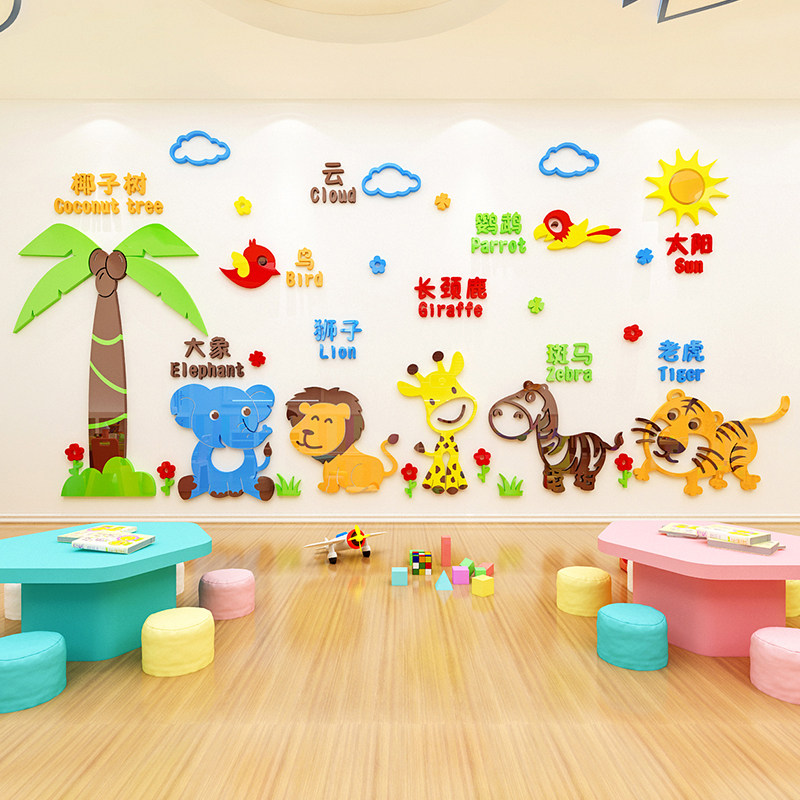 Cartoon animals 3d three-dimensional wall stickers children's room school classroom background wall layout early education kindergarten wall decoration
