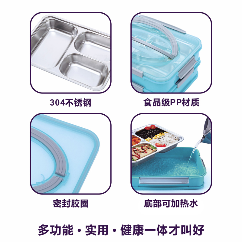 Love Chixiang 304 Stainless Steel Liner Lunch Box Divided Fast Food Tray Hand Boxed Lunch Box With Lid Preservation Box